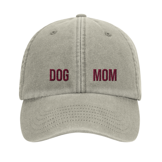 DOG MOM - Embroidered Vintage Cotton Dad Hat | Beechfield B655