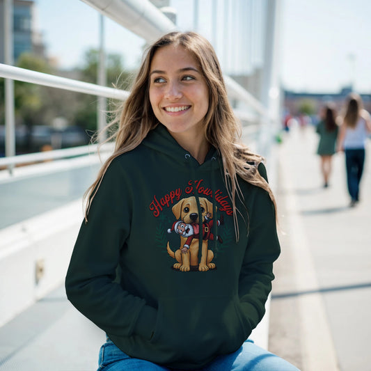 Happy Howlidays - Chocolate Labrador. Classic Unisex Pullover Hoodie | Gildan® 18500