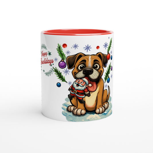Humourus Christmas Fawn Boxer Puppy Mug – Happy Howlidays Design – 11oz Ceramic Coffee Cup
