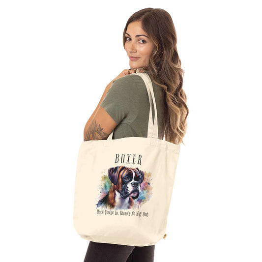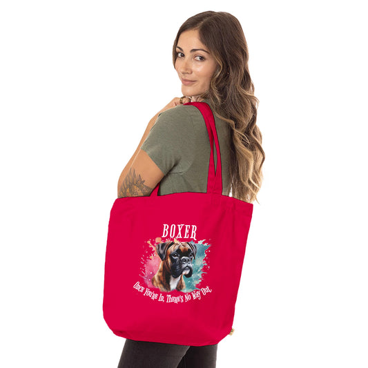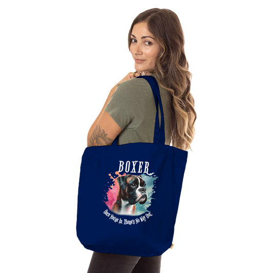 Boxer brindle - Sparkly Brindle Boxer with white markings with Mob text. Organic Long Handles Tote Bag | SOL'S Stockholm 04091