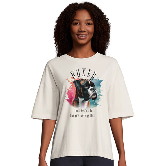 Boxer brindle - Sparkly Brindle Boxer Dog with Mob text. Organic In Conversion Women's Oversized T-shirt | SOL'S Boxy Women 03807