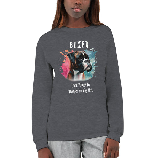 Boxer brindle - Sparkly Brindle Boxer with Mob text. Classic Unisex Longsleeve T-shirt.