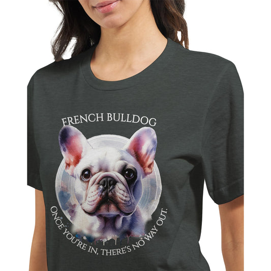 White French Bulldog in watercolors with Mob text. Premium Unisex Crewneck T-shirt | Bella + Canvas 3001