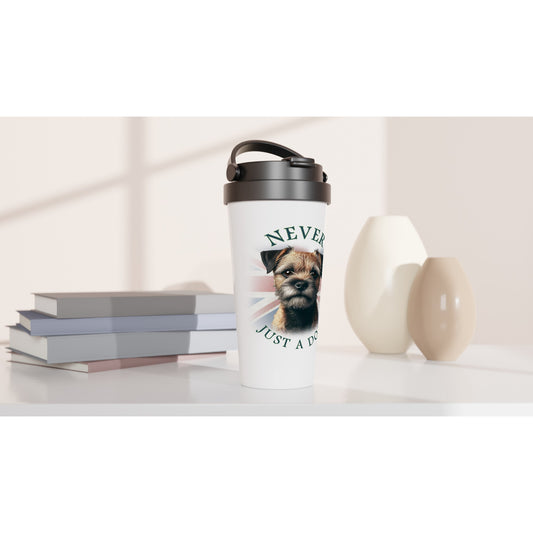 Never Just A Dog - Border Terrier. White 15oz Stainless Steel Travel Mug