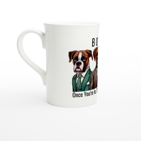Boxer with Mob text. White 10oz Porcelain Slim Mug