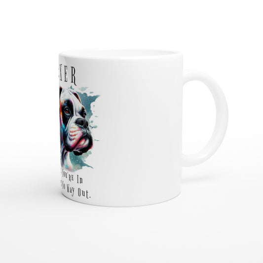 Boxer white - Sparkly White Boxer Dog with a mob text. 11oz Ceramic Mug - White 11oz Ceramic Mug