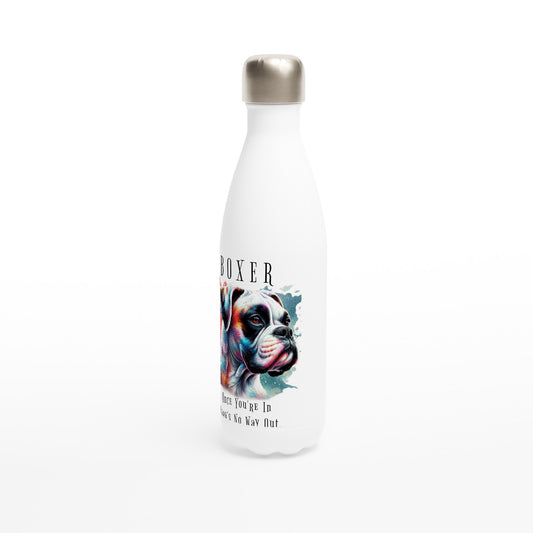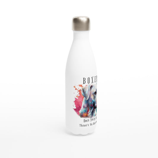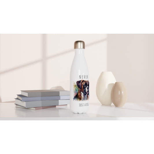 Brindle Boxer In Watercolors With A Text - Never Just A Dog. White 17oz Stainless Steel Water Bottle