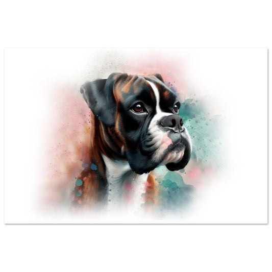 Sealed Fawn Boxer Dog in watercolors. Premium poster med matt papper.