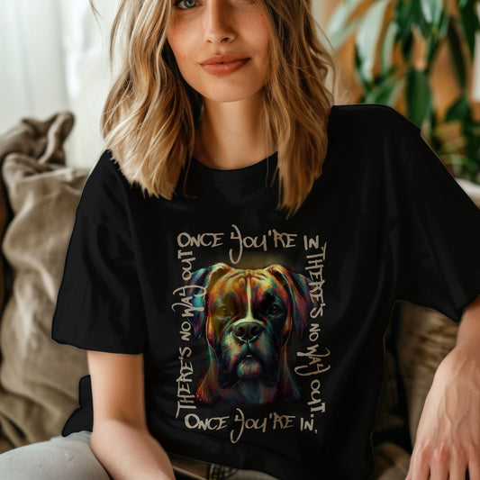 Brindle Boxer - Once You're In, There's No Way Out. | Bella + Canvas 3001 Black
