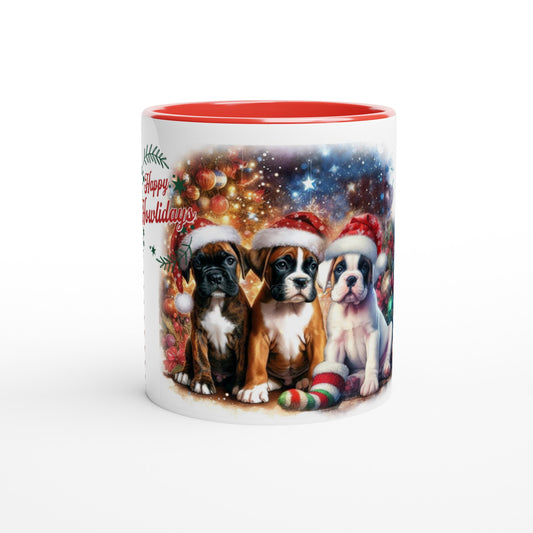 Christmas Boxer Puppy Ceramic Mug – 11oz Colorful Holiday Design
