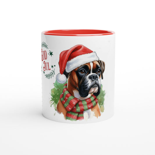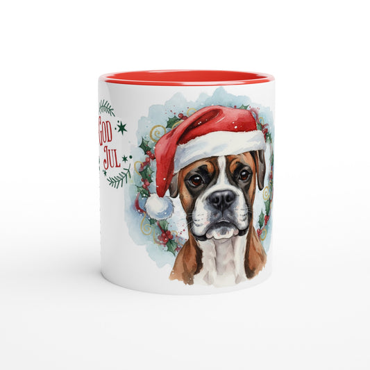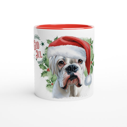 In Swedish - God Jul - Christmas White Boxer Mug – 11oz Ceramic Coffee Cup.
