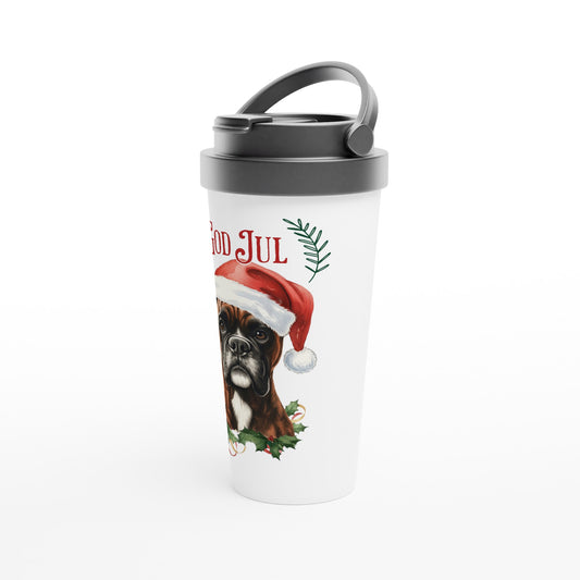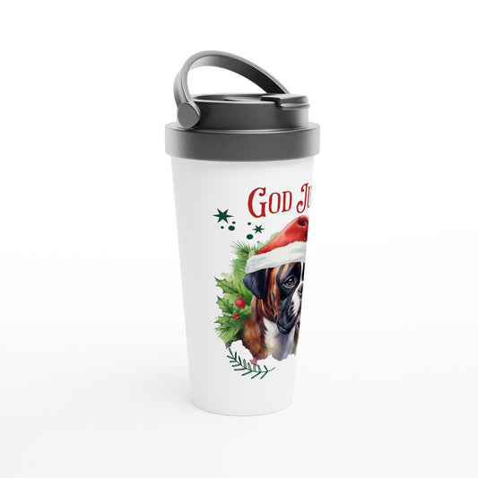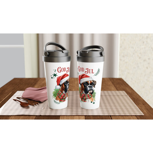 In Swedish - God Jul - Christmas White Boxer 15oz Stainless Steel Travel Mug.