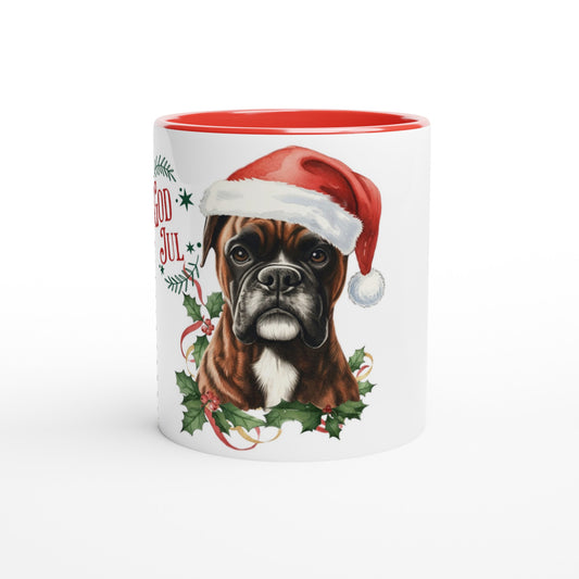 In Swedish - God Jul - Brindle Boxer Mug – 11oz Ceramic Coffee Cup