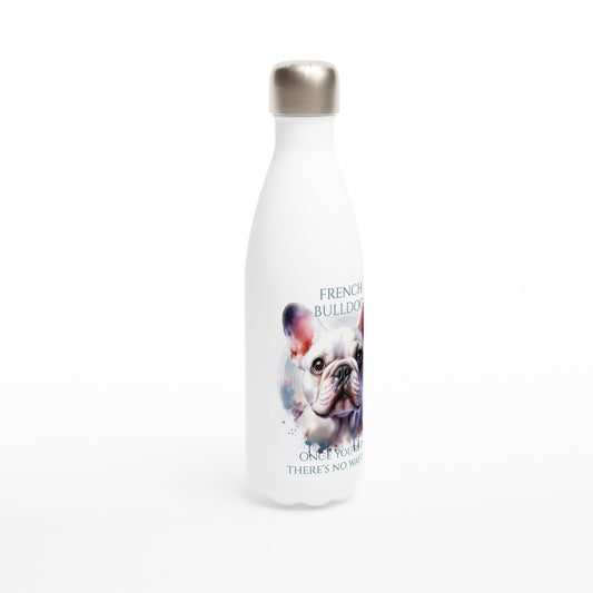 White French Bulldog in watercolors. White 17oz Stainless Steel Water Bottle