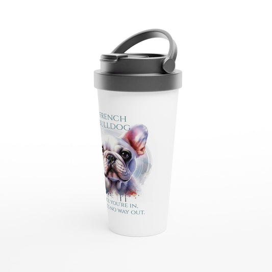 White French Bulldog in watercolors. White 15oz Stainless Steel Travel Mug