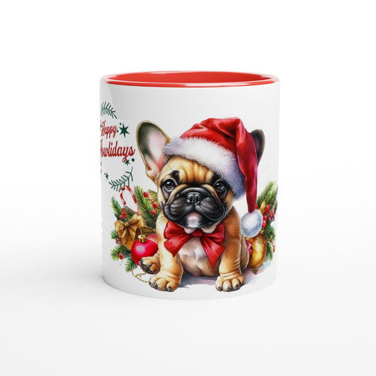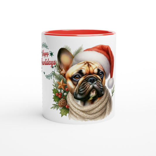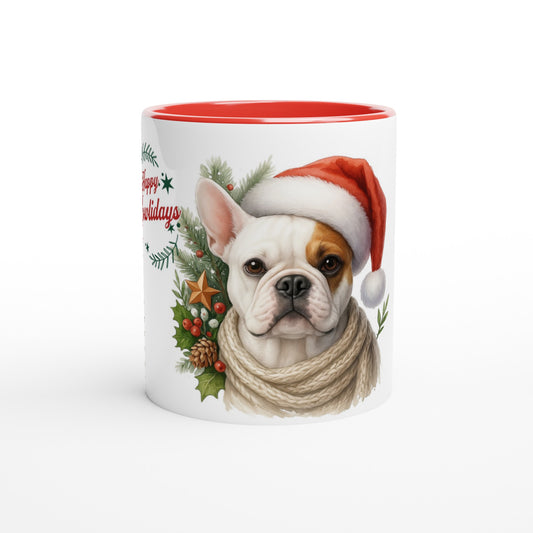 Christmas Honey Pied Frenchie Mug – Happy Howlidays Design – 11oz Ceramic Coffee Cup