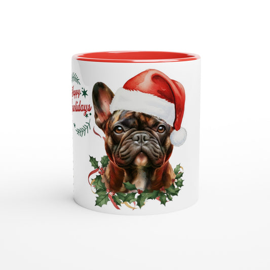 Christmas Brindle Frenchie Mug – Happy Howlidays Design – 11oz Ceramic Coffee Cup