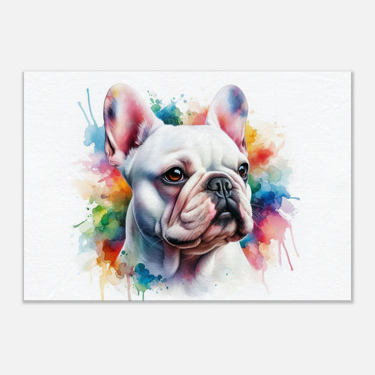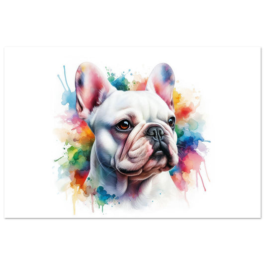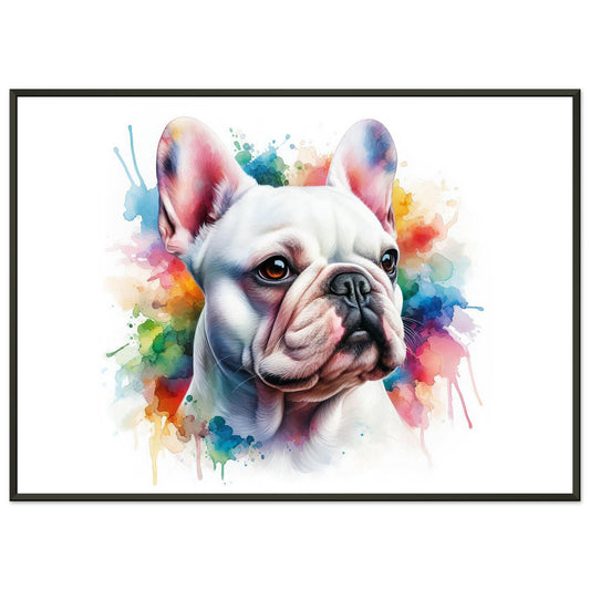 White French Bulldog in watercolors. Premium Matte Paper Metal Framed Poster