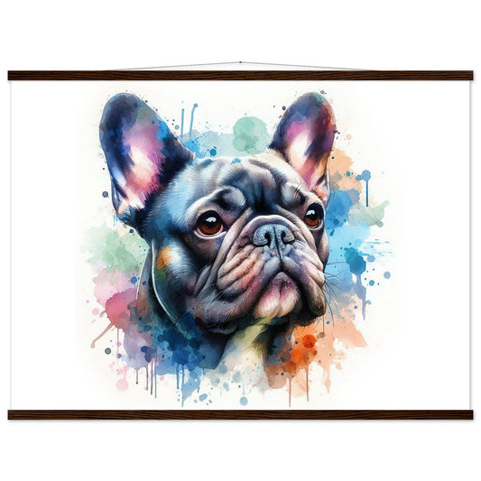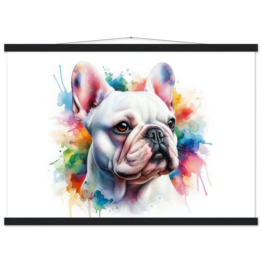 White French Bulldog in watercolors. Premium Matte Paper Poster with Hanger