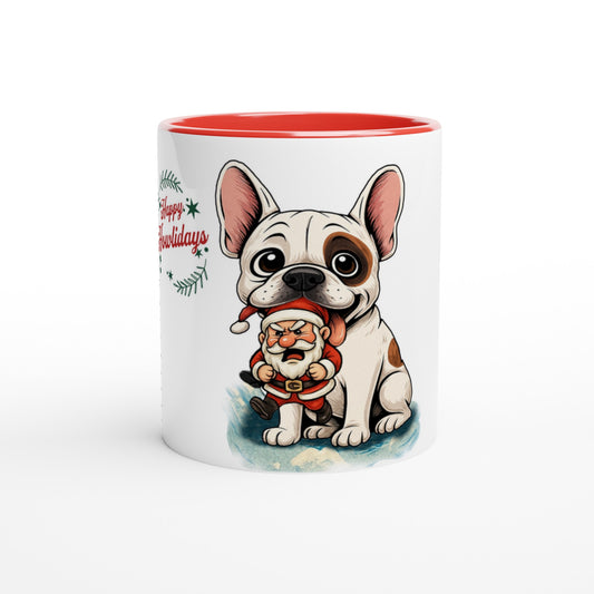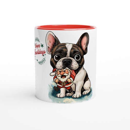 Humourus Christmas Honey Pied French Bulldog Puppy Mug – Happy Howlidays Design – 11oz Ceramic Coffee Cup