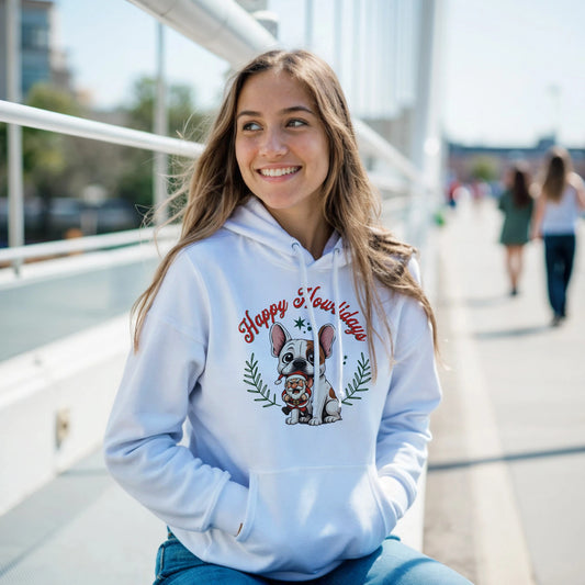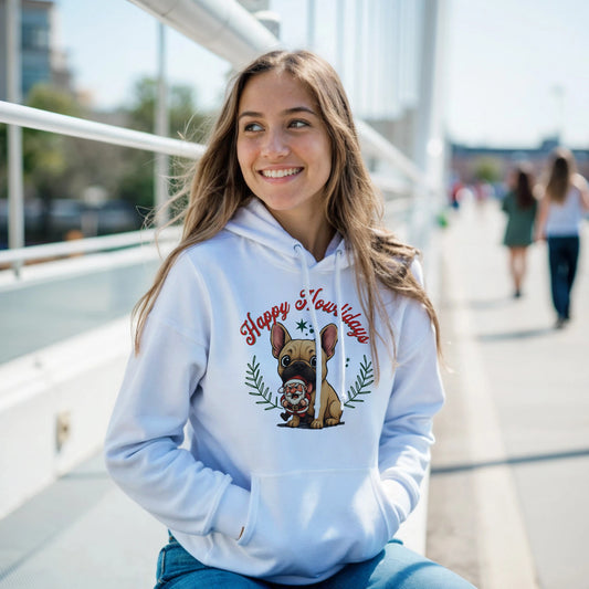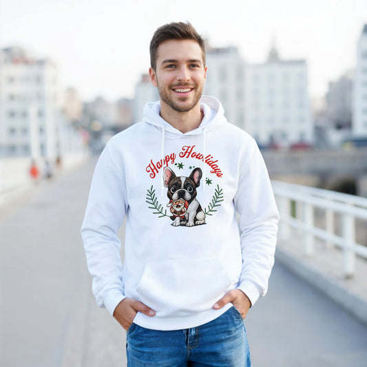 Happy Howlidays - Honey Pied French Bulldog. Classic Unisex Pullover Hoodie | Gildan® 18500