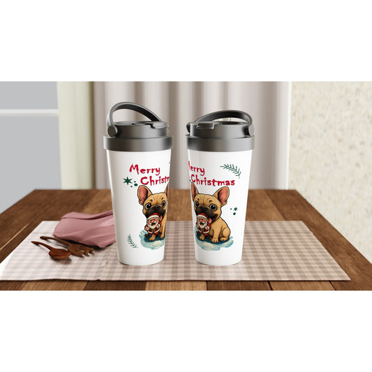 Humourus Christmas Brindle Pied French Bulldog Puppy Travel Mug/Tumbler - White 15oz Stainless Steel Travel Mug