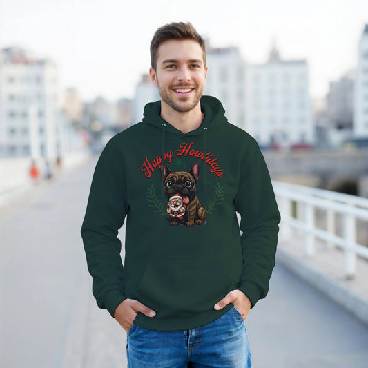 Happy Howlidays - Brindle French Bulldog. Classic Unisex Pullover Hoodie | Gildan® 18500