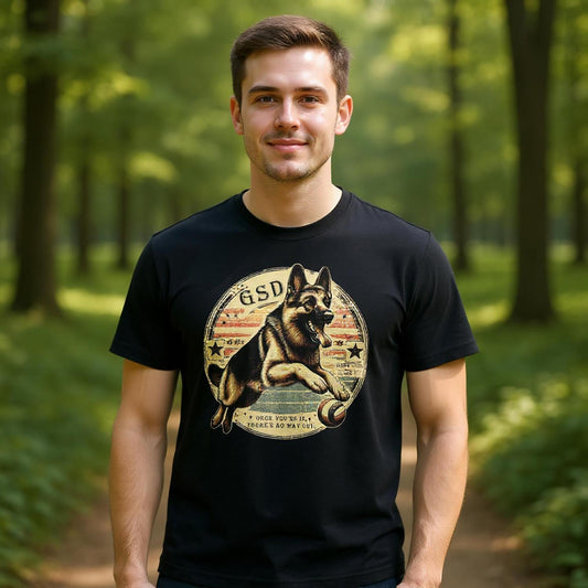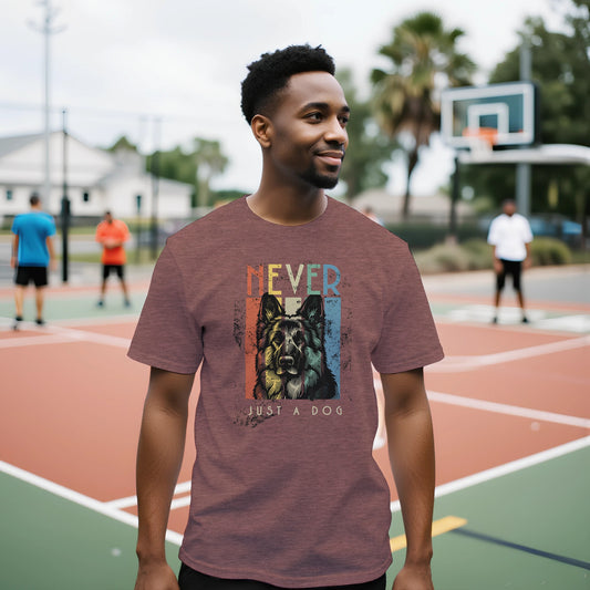 Retro tee. Never Just A Dog - GSD. Premium Unisex Crewneck T-shirt | Bella + Canvas 3001