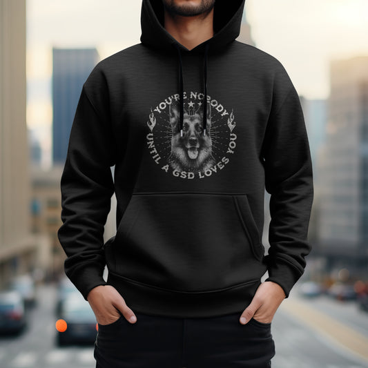 German Shepherd Hoodie – You're Nobody Until a GSD Loves You. Classic Unisex Hoodie Gildan 18500.