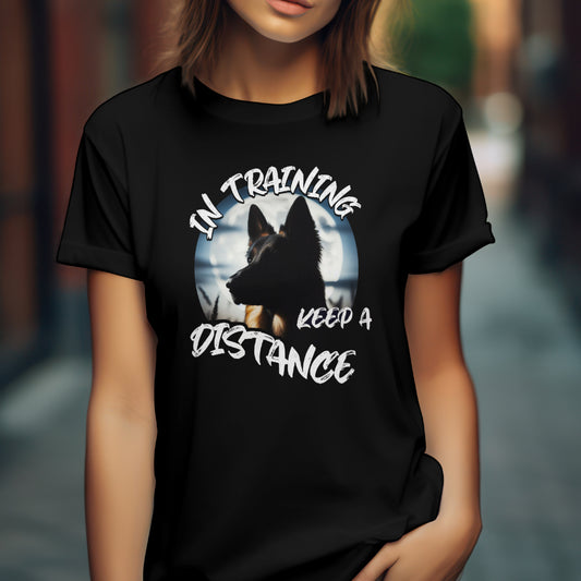 In Training -German Shepherd In Moonlight. Front And Back Print. Premium Unisex Crewneck T-shirt | Bella + Canvas 3001