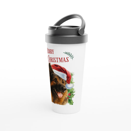 Merry Christmas German Shepherd Tumbler - White 15oz Stainless Steel Travel Mug