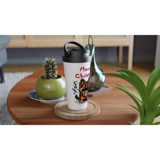 Humorous German Shepherd Puppy Tumbler – Merry Christmas Design 11oz - White 15oz Stainless Steel Travel Mug