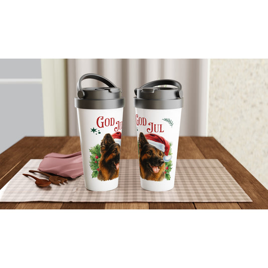 In Swedish - God Jul - German Shepherd Tumbler - White 15oz Stainless Steel Travel Mug