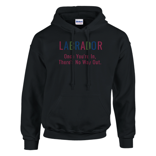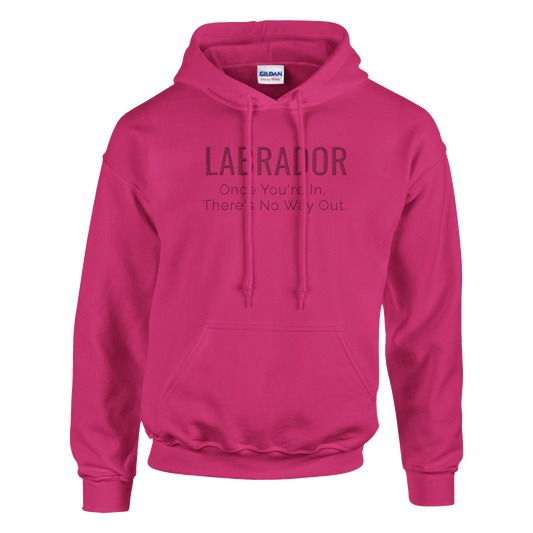 Classic Unisex Pullover Hoodie With Discreet Embroidered Labrador Text.