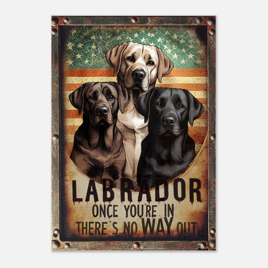 An Aluminium Rusty Looking Sign With Labradors And A Mob Text..