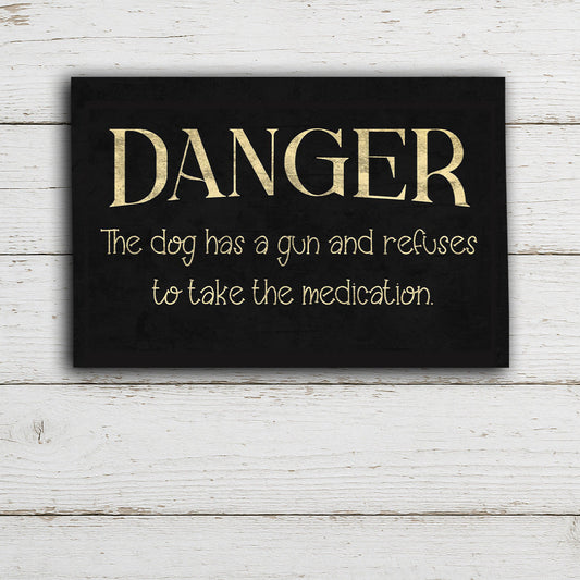 Humorous Aluminum Warning Sign – 'The Dog Has a Gun' Design