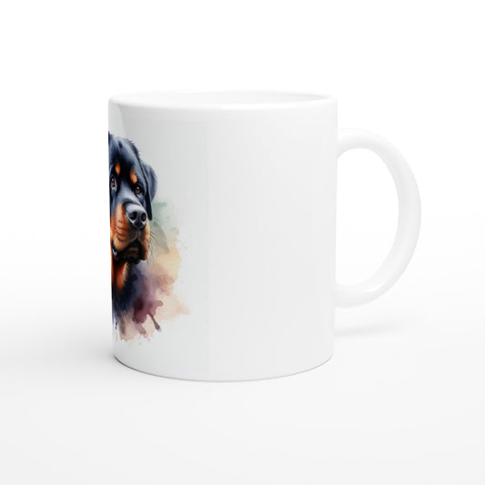 Rottweiler in watercolors. White 11oz Ceramic Mug