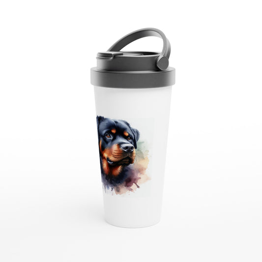 Rottweiler in watercolors. White 15oz Stainless Steel Travel Mug