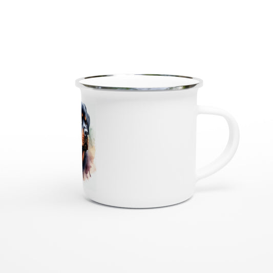 Rottweiler in watercolors. White 12oz Enamel Mug