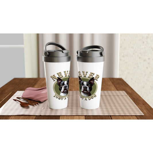 Never Just A Dog - Boston Terrier. White 15oz Stainless Steel Travel Mug