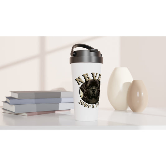 Never Just A Dog - Newfoundland. White 15oz Stainless Steel Travel Mug