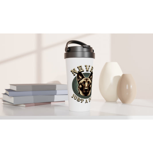 Never Just A Dog - Malinois. White 15oz Stainless Steel Travel Mug