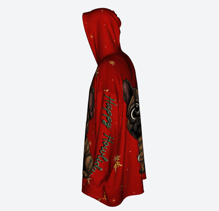 Say hello to your new favourite winter essential—the Happy Howlidays Frenchie plush blanket hoodie! This cosy masterpiece wraps you in cloud-soft plush fabric while showcasing a cheeky Frenchie design and the pawsome "Happy Howlidays" text. Perfect for dog parents who love a good laugh and serious comfort, it's ideal for lazy mornings, movie marathons, or showing off your Frenchie pride during the festive season. Snuggle up, stay warm, and let your love for your four-legged friend shine through with every wear. Because the best holidays are the ones spent wrapped in warmth and wagging butts!