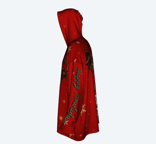 Say hello to your new favourite winter essential—the Happy Howlidays plush blanket hoodie! This cosy masterpiece wraps you in cloud-soft plush fabric while showcasing a cheeky doggy design and the pawsome "Happy Howlidays" text. Perfect for dog parents who love a good laugh and serious comfort, it's ideal for lazy mornings, movie marathons, or showing off your pride for your best friend during the festive season. Snuggle up, stay warm, and let your love for your four-legged friend shine through with every wear. Because the best holidays are the ones spent wrapped in warmth and wagging tails!