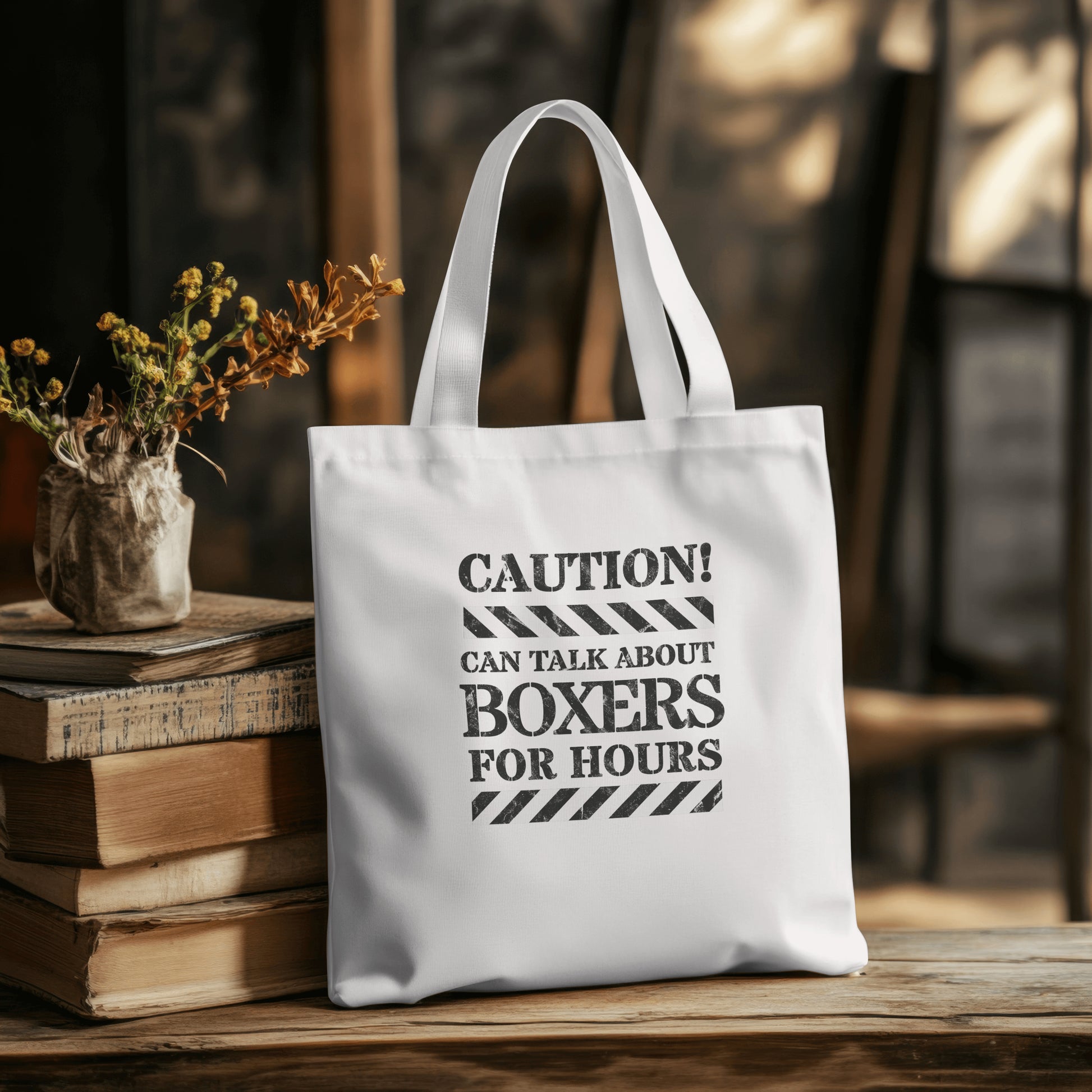 Caution! Can Talk About Boxers.. - Boxer. Print on one side. - Organic Long Handles Tote Bag | SOL'S Stockholm 04091